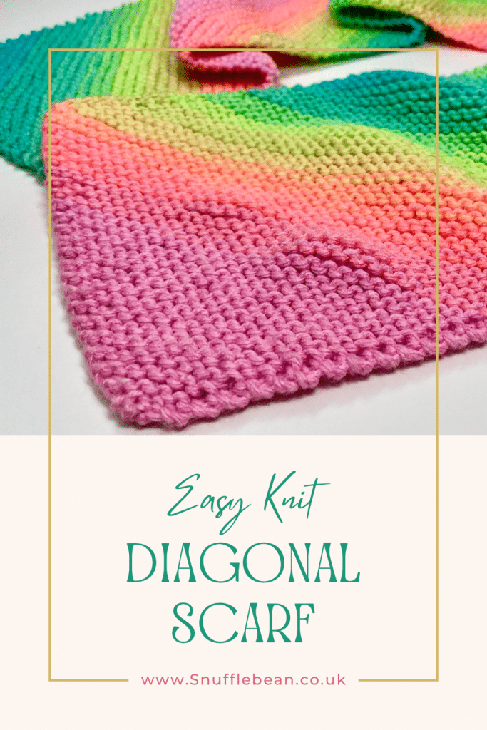 This scarf looks fantastic worked in variegated yarn, or in blocks of colour, but even in one shade, the diagonal stripes add an extra pop of interest that you wouldn’t normally get when working straight rows of garter stitch.