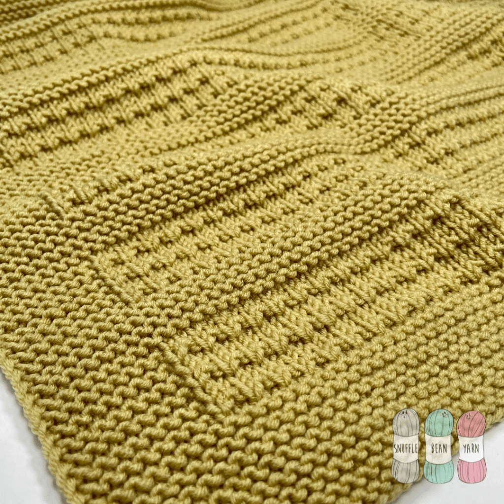 To adjust the width of your blanket you’ll need to cast on more (or indeed less) stitches, it can easily be done using the pattern multiple of 2+1 for the middle textured panel, and an additional 18 stitches (9 for each side) for the garter stitch edging.