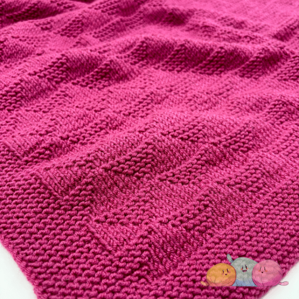 My instructions produce a baby blanket approximately 60cm x 80cm, perfect for using as a cot, pram or travel blanket. But don’t let that stop you from knitting this blanket in any size you want! I think it would look great scaled up as a Sofa Throw, Quilt or Bedspread!