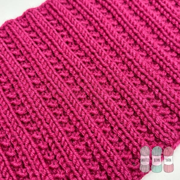 At just a two row repeat, Beaded Rib Stitch is an easy pattern to pick up, and as the stitch repeat is only 5 stitches long, its also a pattern that can be memorised pretty quickly. Why not incorporate it into a larger project such as a baby blanket – or even use it for the ribbing of a garment, it has a similar stretch to 1×1 rib so it could be substituted into a pattern nice and easily.