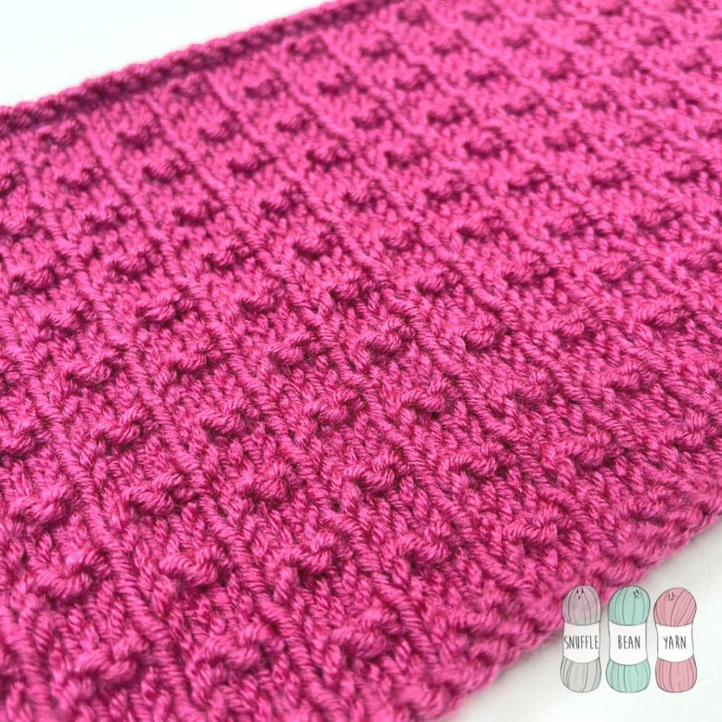 Double Fleck Stitch is similar in texture to Andalusian, and Double Andalusian Stitch but stands out as the little seed stitches are staggered rather than sitting on top of each other.