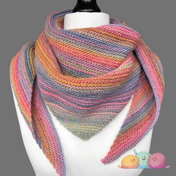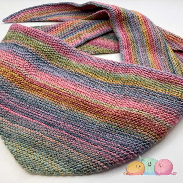I chose to use one of my new favourite yarns for this shawl. The soft long colour changes of James C Brett Emotions DK do all the hard work for you and I haven’t knitted a project yet that hasn’t looked fabulous in it.