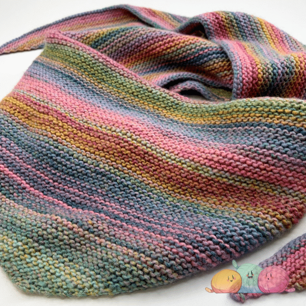 I don’t knit a lot of triangular shawls because I find the deepness of the most popular designs a little bit unwieldy to wear. Somehow the “triangleness” of them just swamps me and ends up feeling uncomfortable rather than cosy.